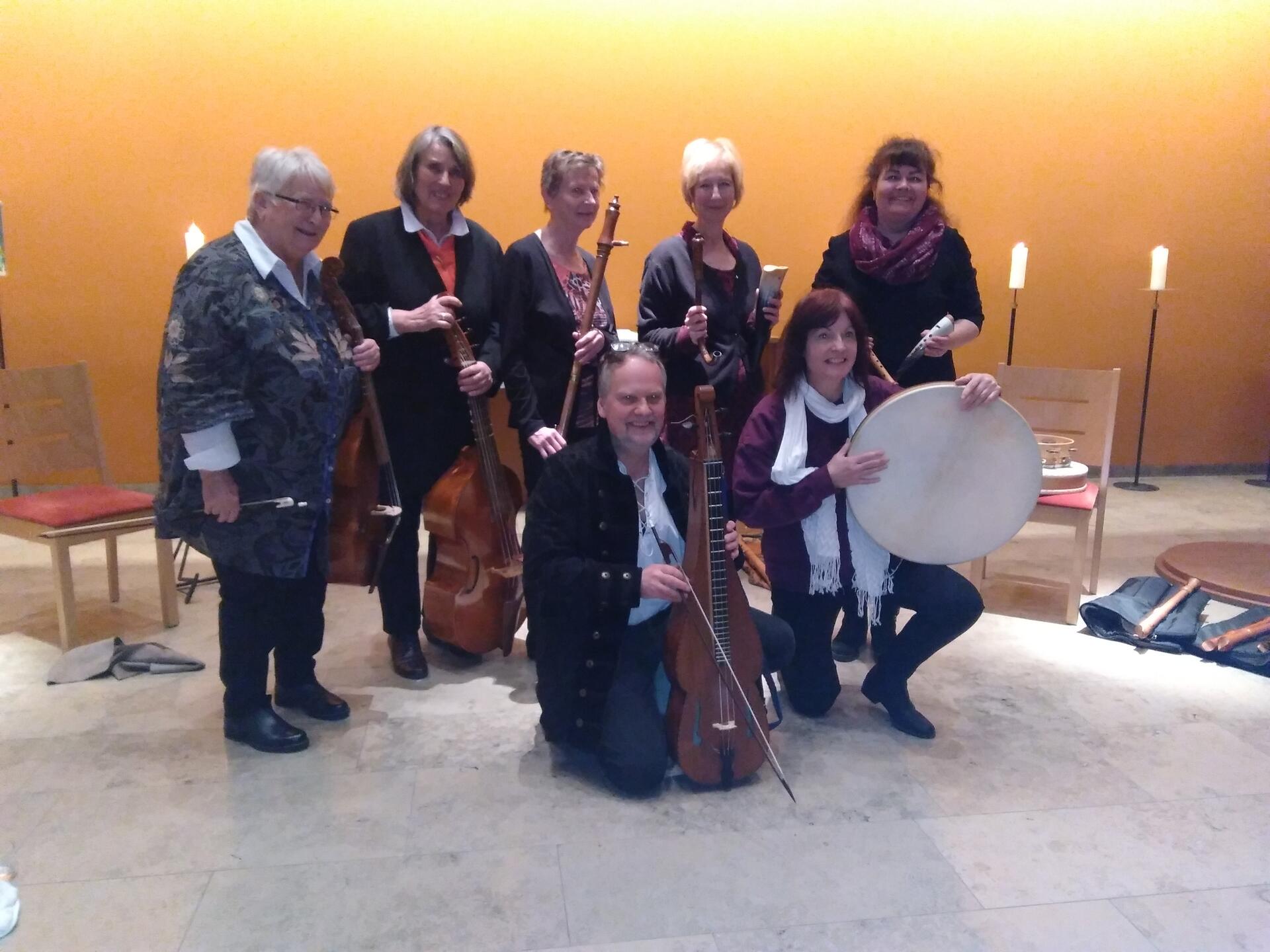 Das Repertoire unseres achtköpfigen Ensembles besteht aus Tänzen, Instrumentalstücken und geistlicher Musik aus Renaissance und Frühbarock.